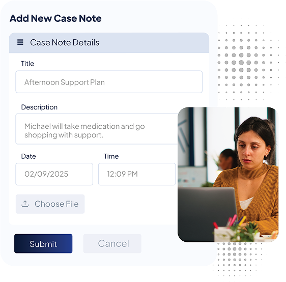 Keep your records audit-ready with built-in NDIS case notes compliance. Every note is securely stored and easily retrievable.