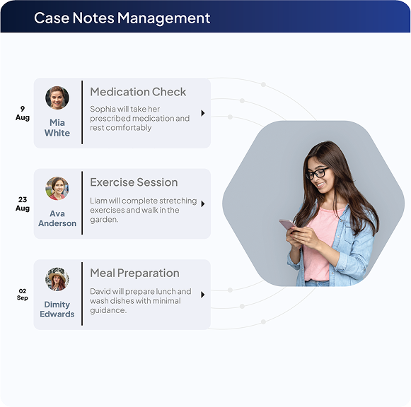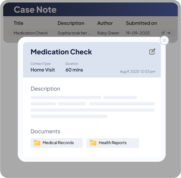 Admins can capture and store information instantly across desktop and mobile. Our case notes feature ensures that every detail is logged, accurate, and accessible whenever needed.