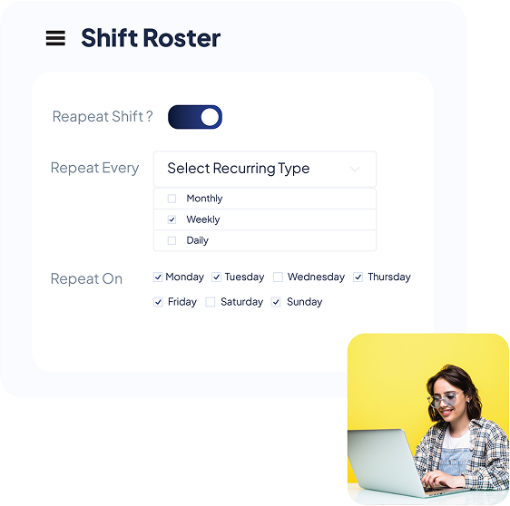 Take full control over recurring rosters with flexible scheduling patterns. Set shifts to repeat daily, weekly, or monthly while keeping everything accurate and organized.