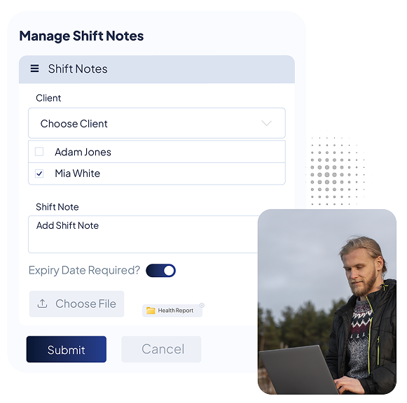 Each note is automatically linked to its respective client profile and shift record for easy access.