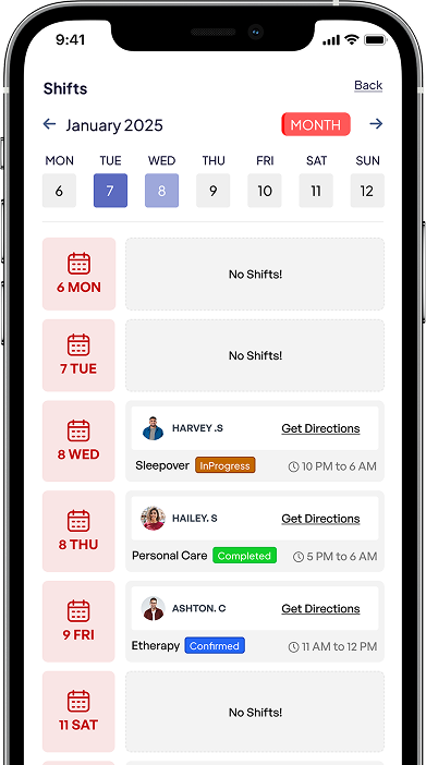 Accept or decline shifts directly from your mobile. Ideal for private carers working independently.