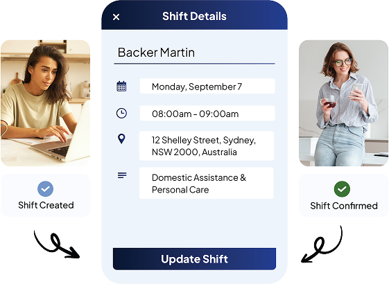 RotaWiz keeps independent disability support workers updated with quick updates, no matter if workers have admin support or not.